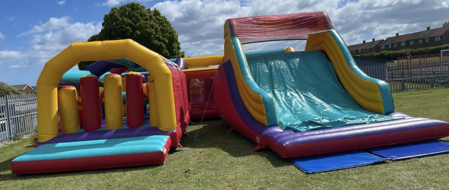 Are you looking for an exciting and challenging activity for your next event in Hartlepool, Billingham, Stockton, Middlesbrough, Peterlee, or the surrounding areas? Our 3-part U-shaped assault course is sure to deliver! This inflatable obstacle course features a series of obstacles, including climbing walls, slides, and more, all designed to test your strength, agility, and endurance.