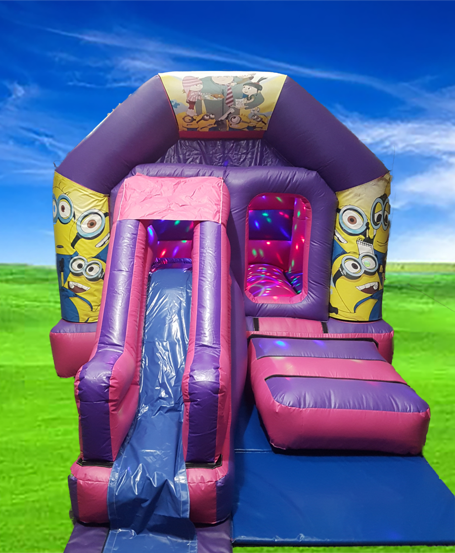 The frozen combination bouncy castle and front exit slide is brand new and is a beautiful fetes of engineering it is fully enclosed and cut off from the elements. It has a Bluetooth speaker and lights that go to the beat of the music, you simply have your device ready to connect to the inflatable when we arrive and once connected you can play your music from your device and the sound comes through the speaker. We supply inflatables across the North East of England. . we can supply this inflatable in many different themes and colors.